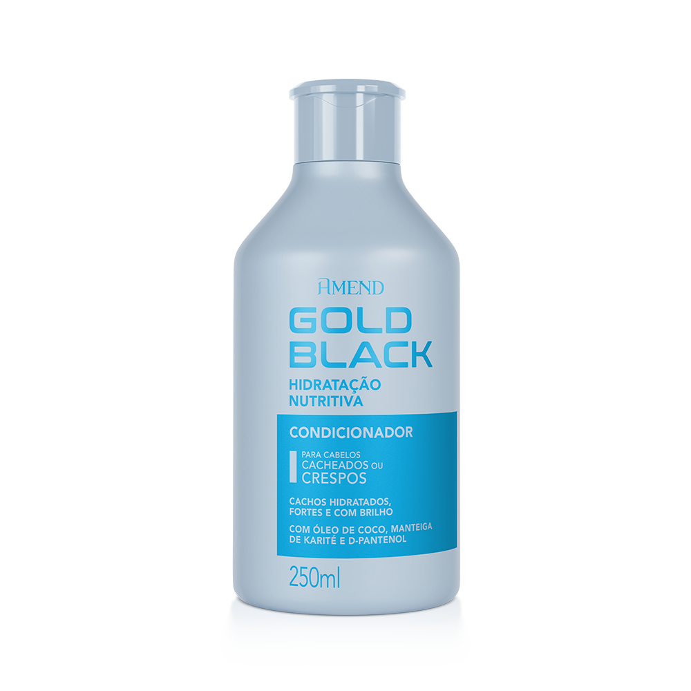 O Condicionador Gold Black Hidratação Nutritiva foi desenvolvido para cuidar dos cabelos cacheados ou crespos e proporciona condicionamento intenso. Sua fórmula combina ativos com alto poder de hidratação, nutrição e reparação, que reduzem a formação de pontas duplas, fortalecem o cabelo, e aumentam o brilho, a maciez e a maleabilidade dos fios. Livre de Parabenos, Silicones e Corantes. Dermatologicamente testado.